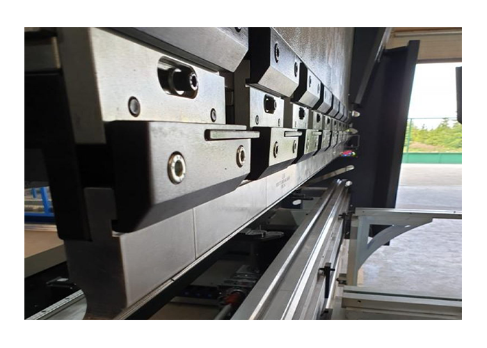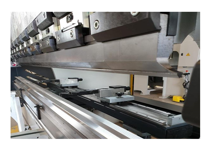• High stroke hydraulıc cylinders• Precision back gauge system• Accordance with CE HORBIGER hydraulıc system• Operating speeds can be adjusted with proportıonal valve system• Foot pedal with emergency stop and up buton for remote control• Hardened and grinded the upper die part and V-channel lower dies• 4 axis control ROBOSOFT model CNC control unit• Graphic LCD display• Different language options• Up to 200 programs / 400 steps• Setpoint bending angle input data• Colour RAL 7015-RAL 5023